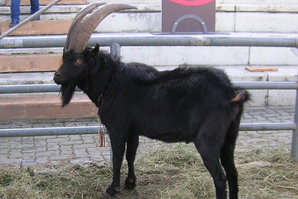 The Valdostana goat is a large animal. The average height of buck is 80 cm, and 75 cm for does. The head is heavy and robust, the concave front-nasal profile and the lively expression. The ears are erect, rather small, pointed, and facing forward. The forehead is wide, the horns very developed, robust and saber-shaped in the male, turned backward and shorter in the female (exceptions are the battle subjects where the development of the horns is sometimes greater than that of the males). Beard is frequent. The neck is rather short and robust. The thorax and abdomen are broad. The back region is large and straight. The limbs are medium long, solid, and black horns. Various colors in the coat: brown, black, ash grey, and dark with a dab of blond.