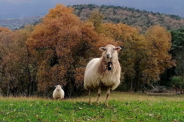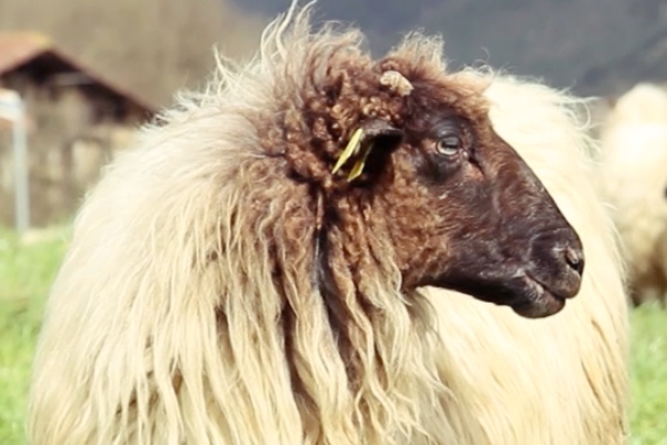 The Latxa breed is a medium- or small-sized, with horns, ribbon, and with a peculiar and long tuft of wool.